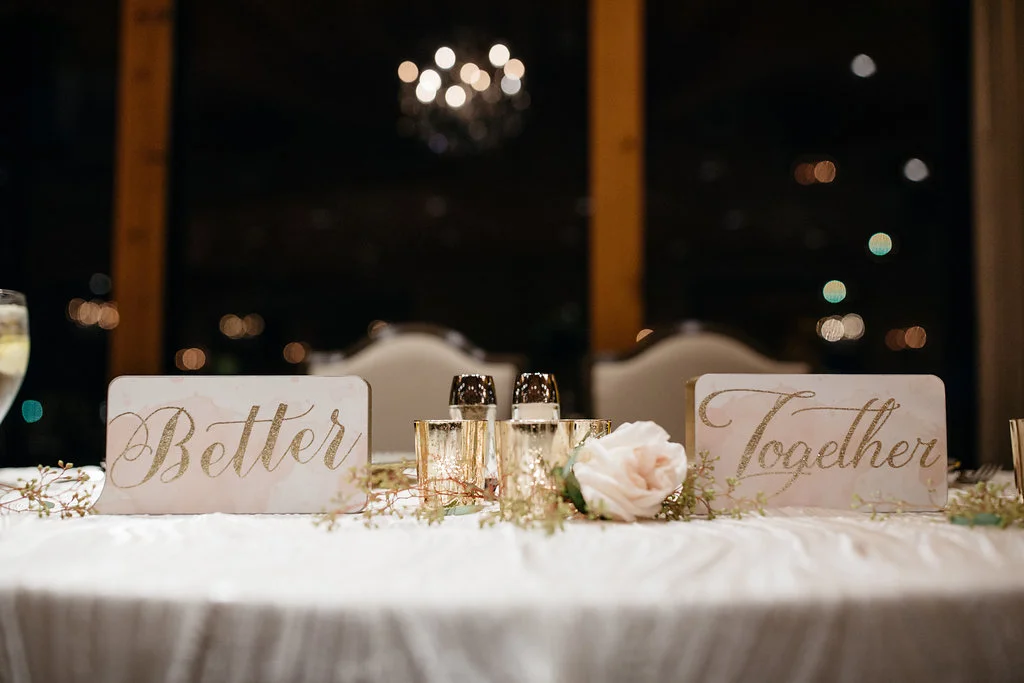After a gorgeous ceremony, everyone enjoyed appetizers and drinks in the Terrace Room, with the shimmering Seattle skyline as the backdrop. Family and friends enjoyed dinner and dancing late into the night, with a fun photo booth set up to capture everyone's silly side.