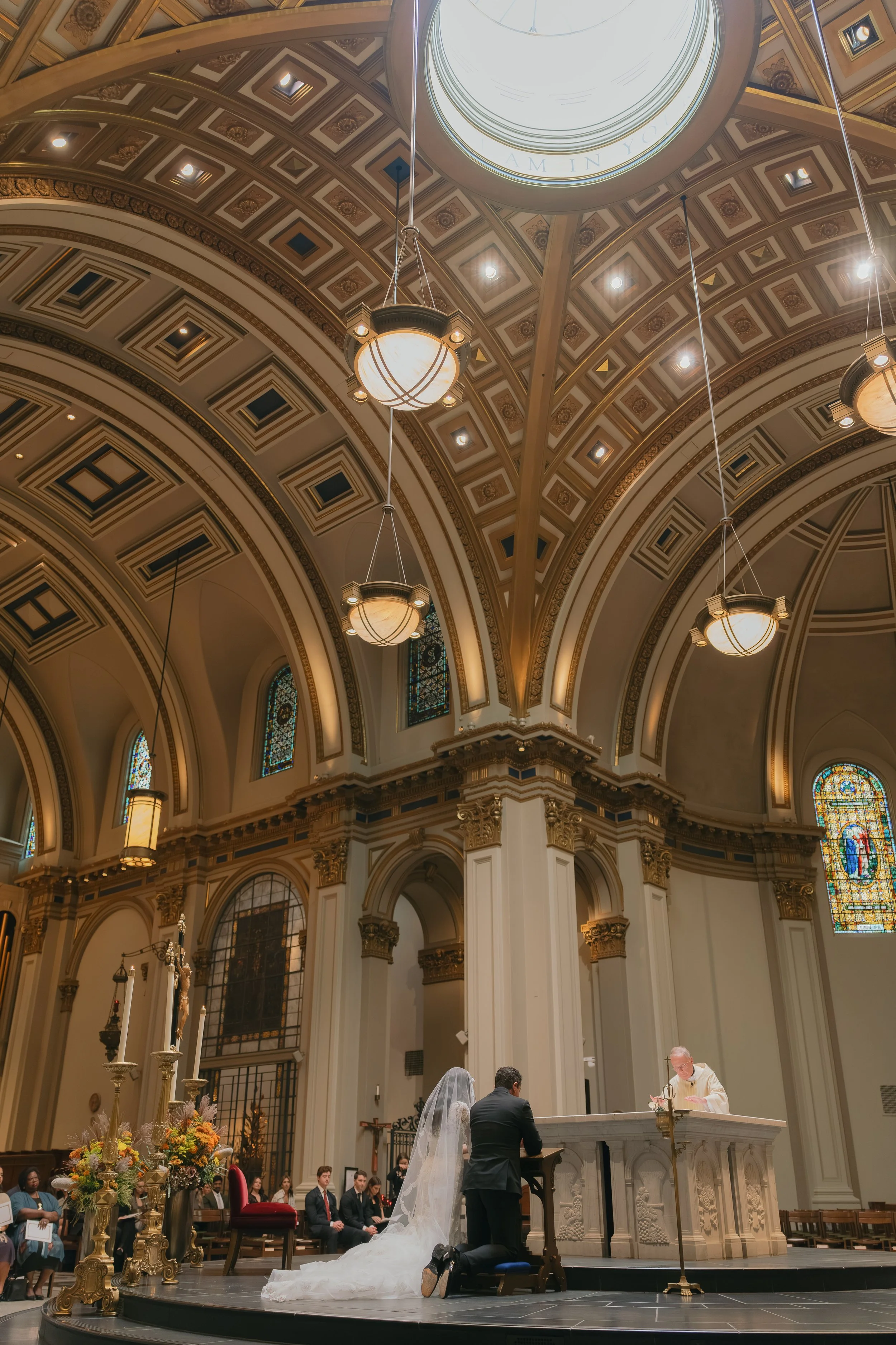 Ashley and Carmine’s wedding was the perfect blend of cathedral elegance with modern flair. By pairing a traditional white palette and classic Jordan almond favors with cascading amaranth and a sea of warm candlelight, they created a day that felt both rooted in history and vibrantly current.